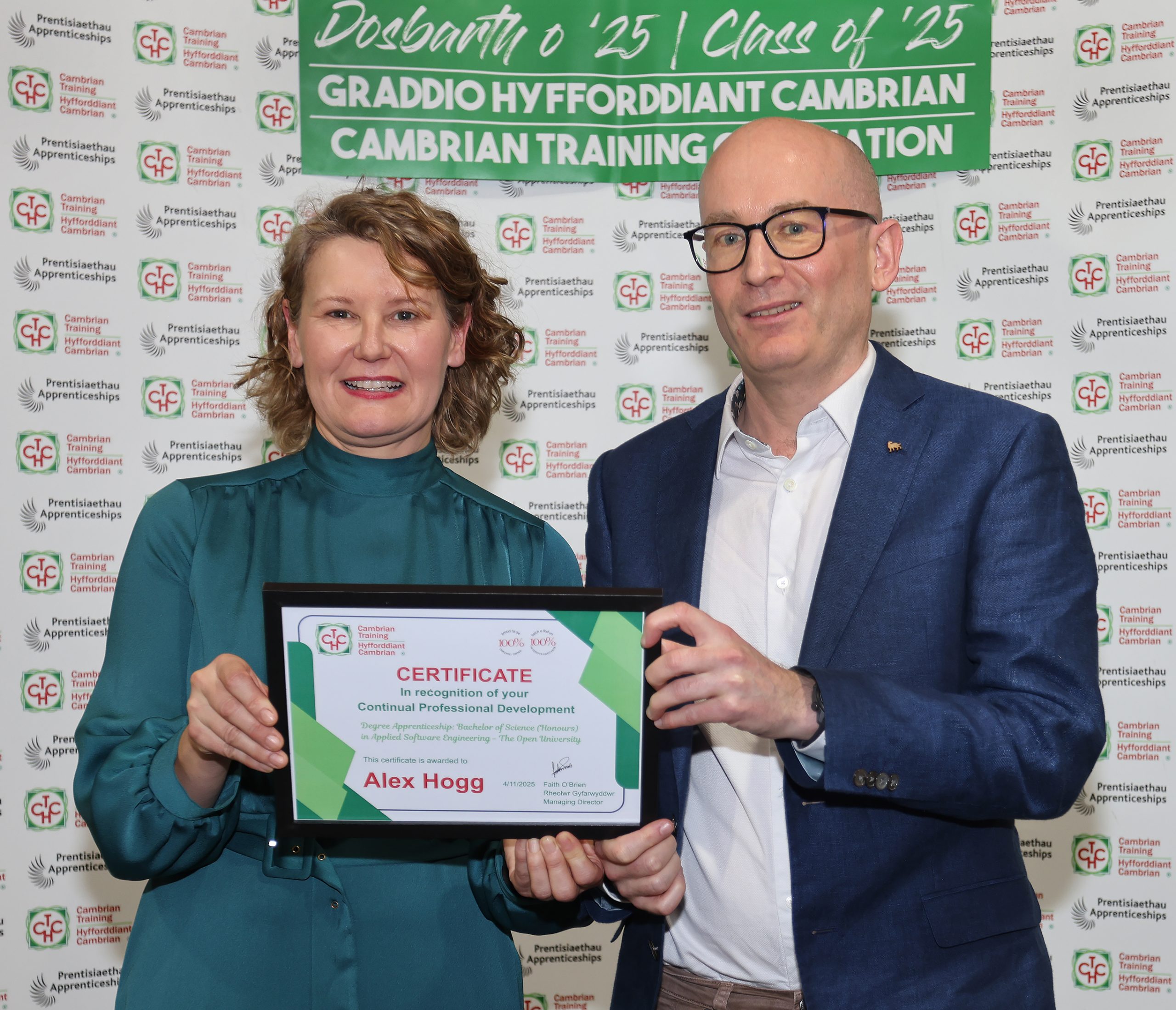 Taith Prentisiaeth Alex Hogg Yng Nghwmni Hyfforddiant Cambrian, rydym yn falch iawn o ddathlu cyflawniad eithriadol Alex Hogg, sydd wedi cwblhau Gradd Prentisiaeth gyda’r Brifysgol Agored, gan raddio gydag Anrhydedd Dosbarth Cyntaf mewn Peirianneg Meddalwedd Gymhwysol. Mae Alex, 43, wedi bod yn aelod gwerthfawr o’n tîm yn y Trallwng ers 17 mlynedd. Mae ei daith… Read more »